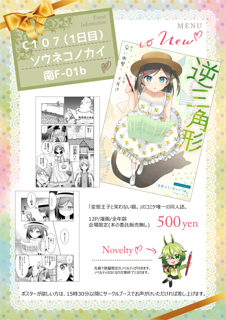 ① 同人誌『変態王子と笑わない猫。』を頒布