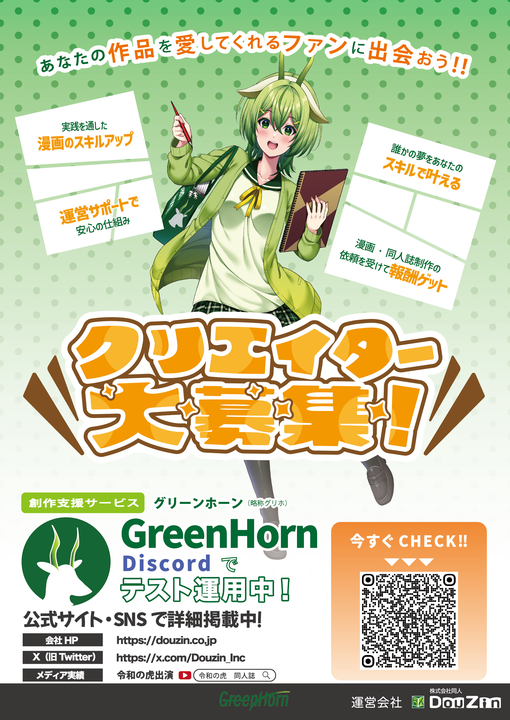 GreenHorn初の同人誌を、コミケ会場限定で頒布します。
